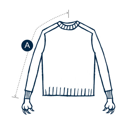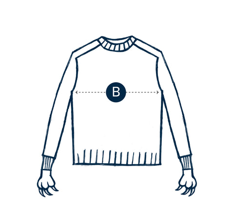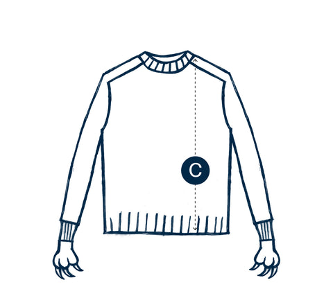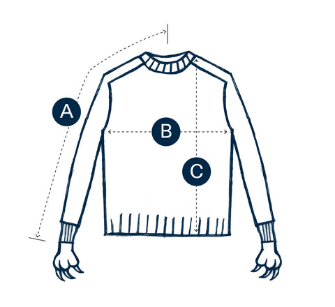 Measure an old jumper which fits you nicely and note the 3 measurements, A, B, C.